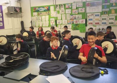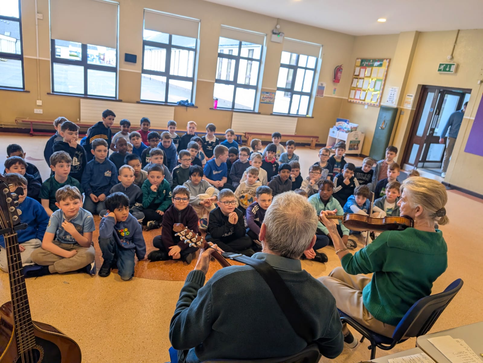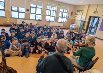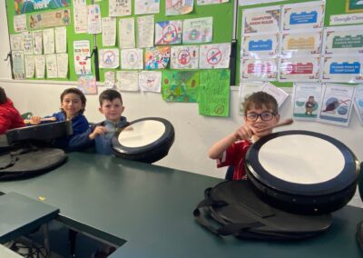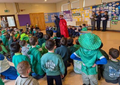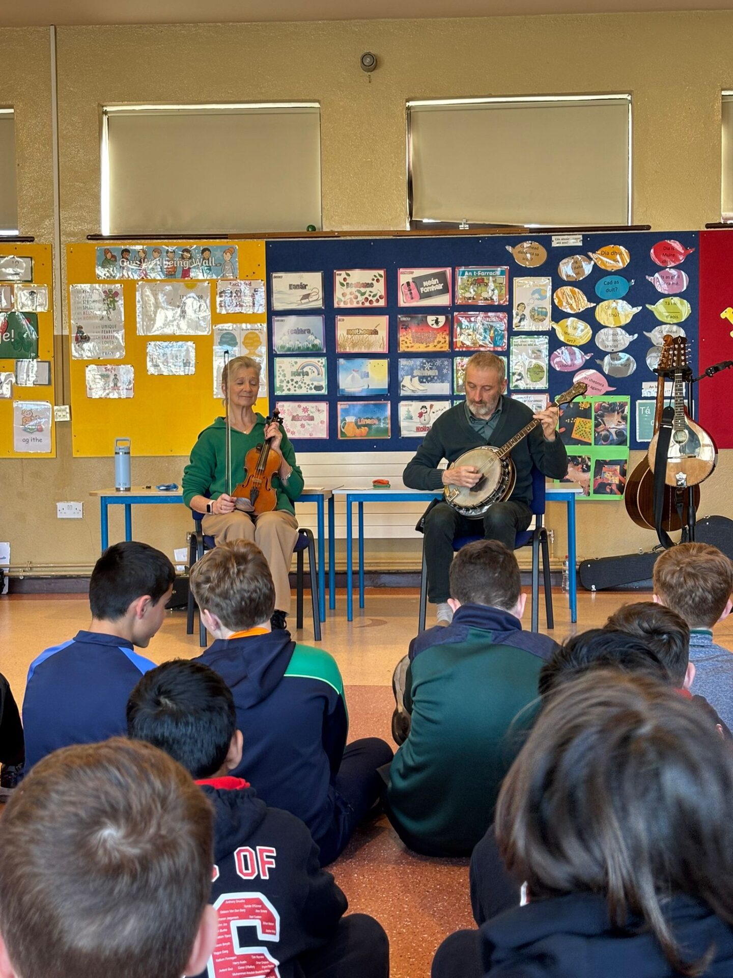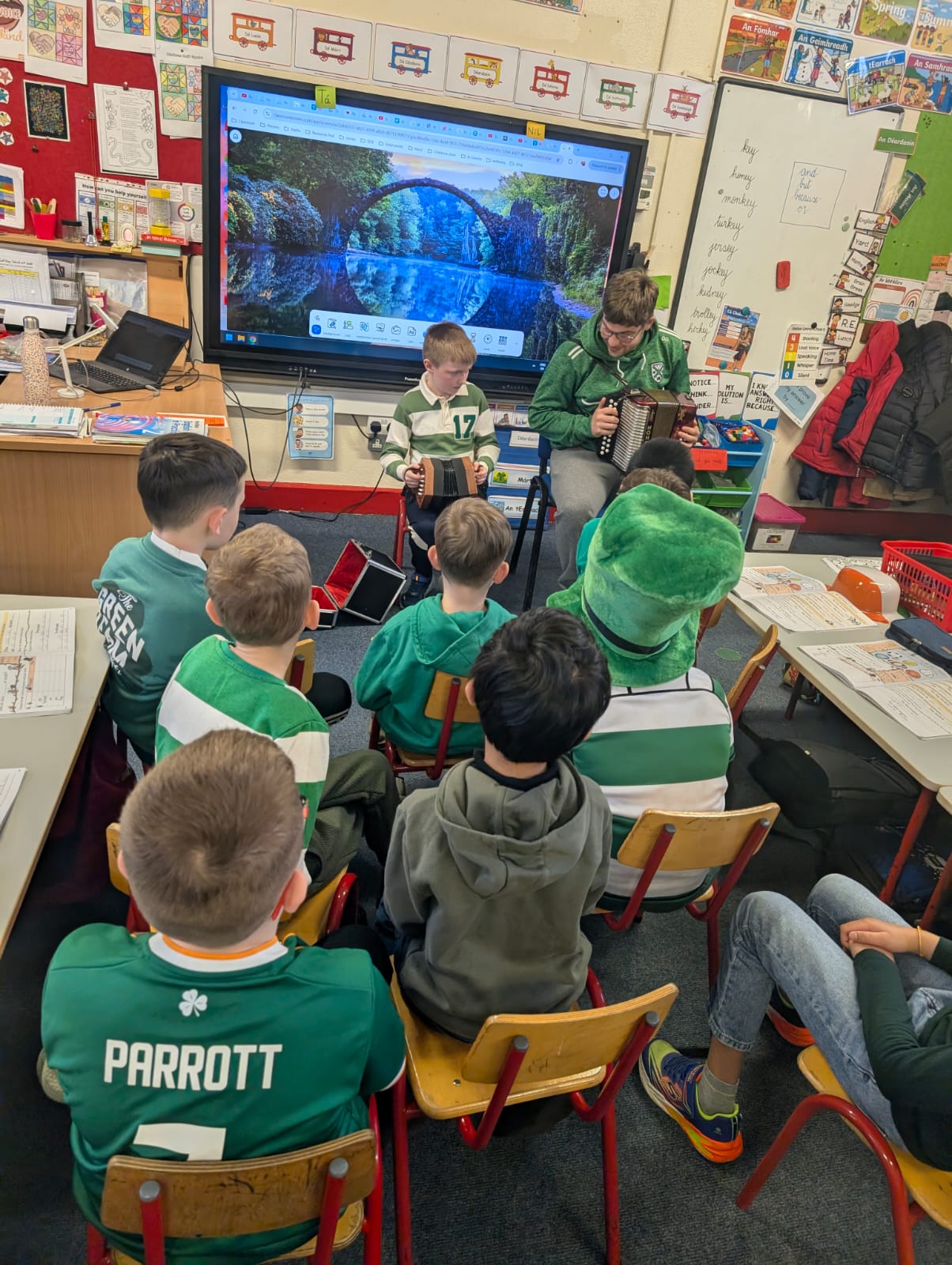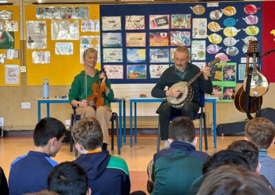 Throughout the week, the children learned about the various Irish musical instruments, played their tin whistles and had the opportunity to play the bodhrán! Ceolchoirm le Colman agus Máire- We were delighted to welcome the talented, Mr Colman Nugent, a previous teacher in St.Corban’s, along with Máire to perform some wonderful Irish traditional music in our halla. They played some Irish traditional instruments such as the tin whistle, banjo, guitar, Irish flute, mandolin and fiddle. The talented Mr. Dineen also performed on the accordian and some of the boys from Naas CBS were also invited to perform.