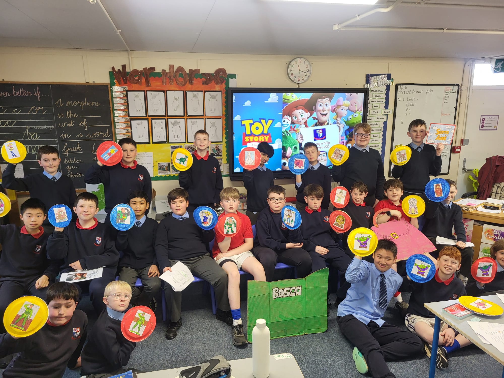 Children were encouraged to speak in Irish, and they made a great effort to use their cúpla focal everyday both at school and at home throughout the week. Every morning, ‘An Nuacht’ (The News) was read as Gaeilge over the intercom by the 6th Class boys. Other exciting events that took place throughout the course of the week included Tráth na gCeist, Púc Fada, Cic Fada, Cluichí Gaeilge, léigh siad leabhair i nGaeilge (read Irish books), Damhsa Ghaeilge, Yoga as Gaeilge le Ms. Duffy agus Ealaín le Ms. Finnegan. 5th Classes performed a ‘Dramaíocht agus Amhráin’, including ‘Toy Story’ and ‘Goldilocks’ i nGaeilge and sang songs.