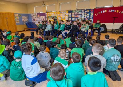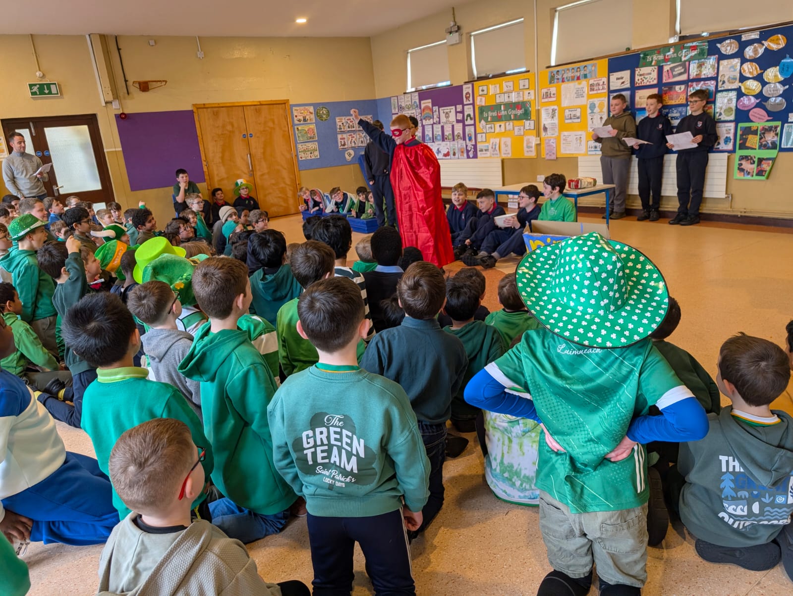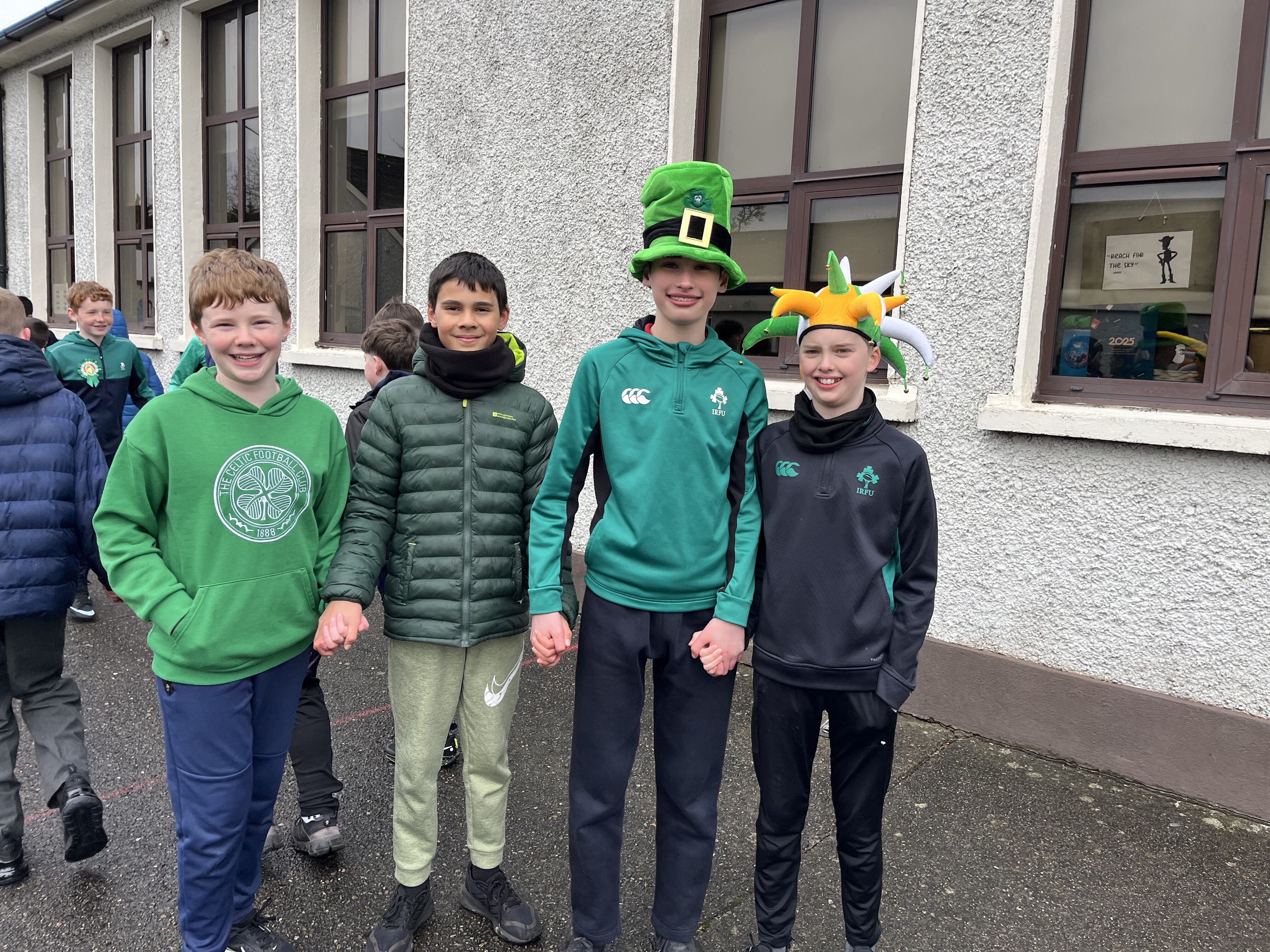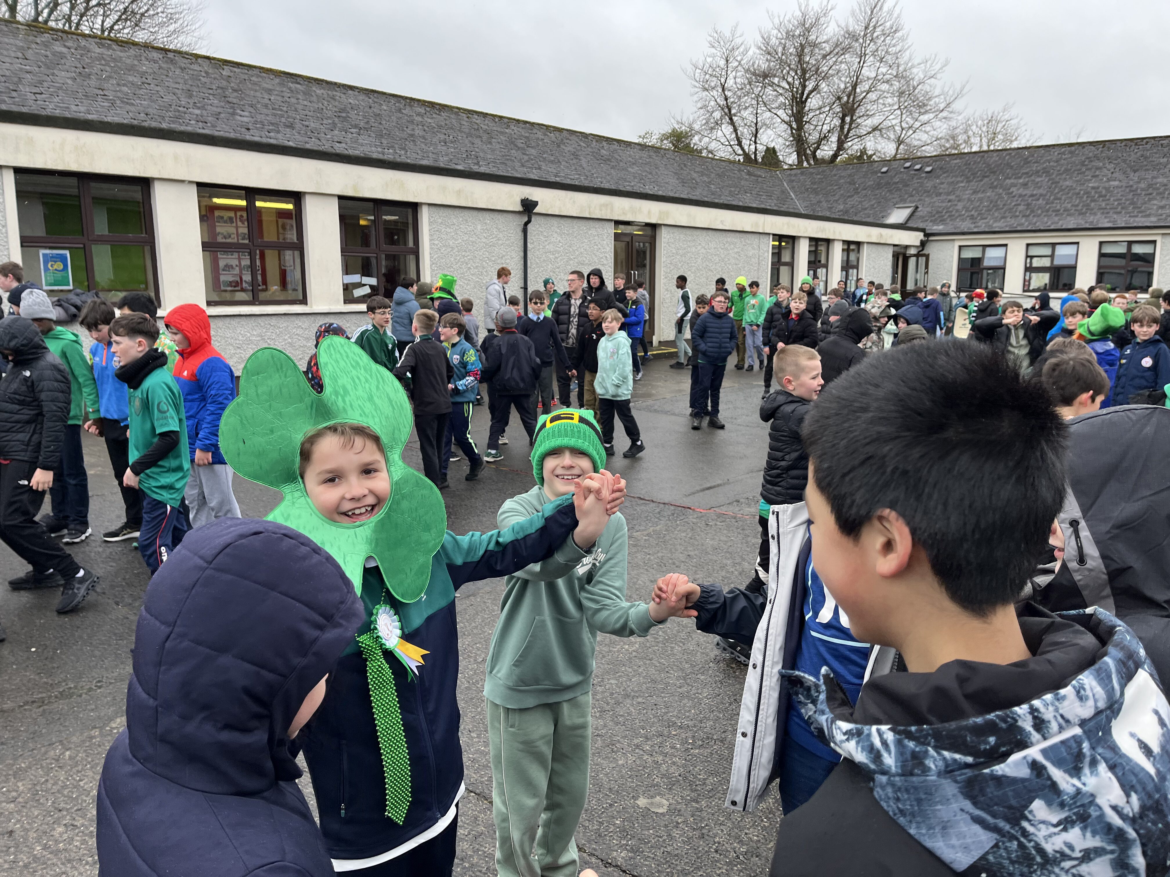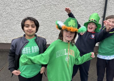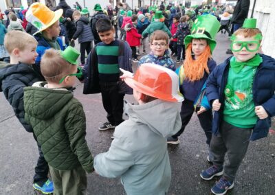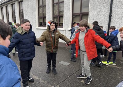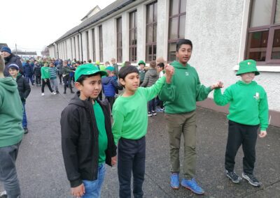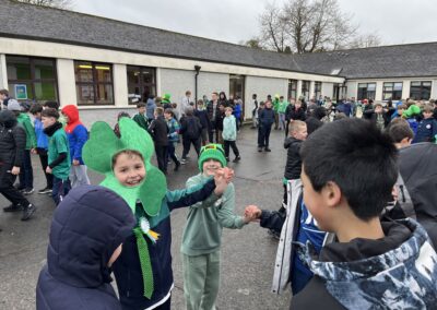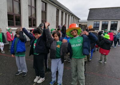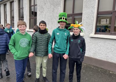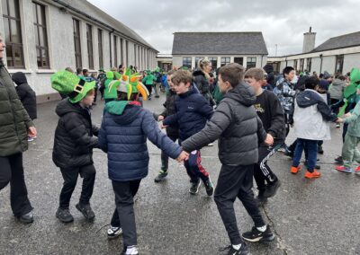Boys were invited to wear something green on ‘Lá Glas’. We had great fun stepping out our Irish dancing during our Ceilí Mór on the school yard on Friday 13th March. A special thanks to Mr. Smyth for coordinating such a fantastic week of Irish events. Buíochas mór leis na múinteoirí agus na daltaí go léir! Bhí an-sprócht agus spraoi ag gach duine!