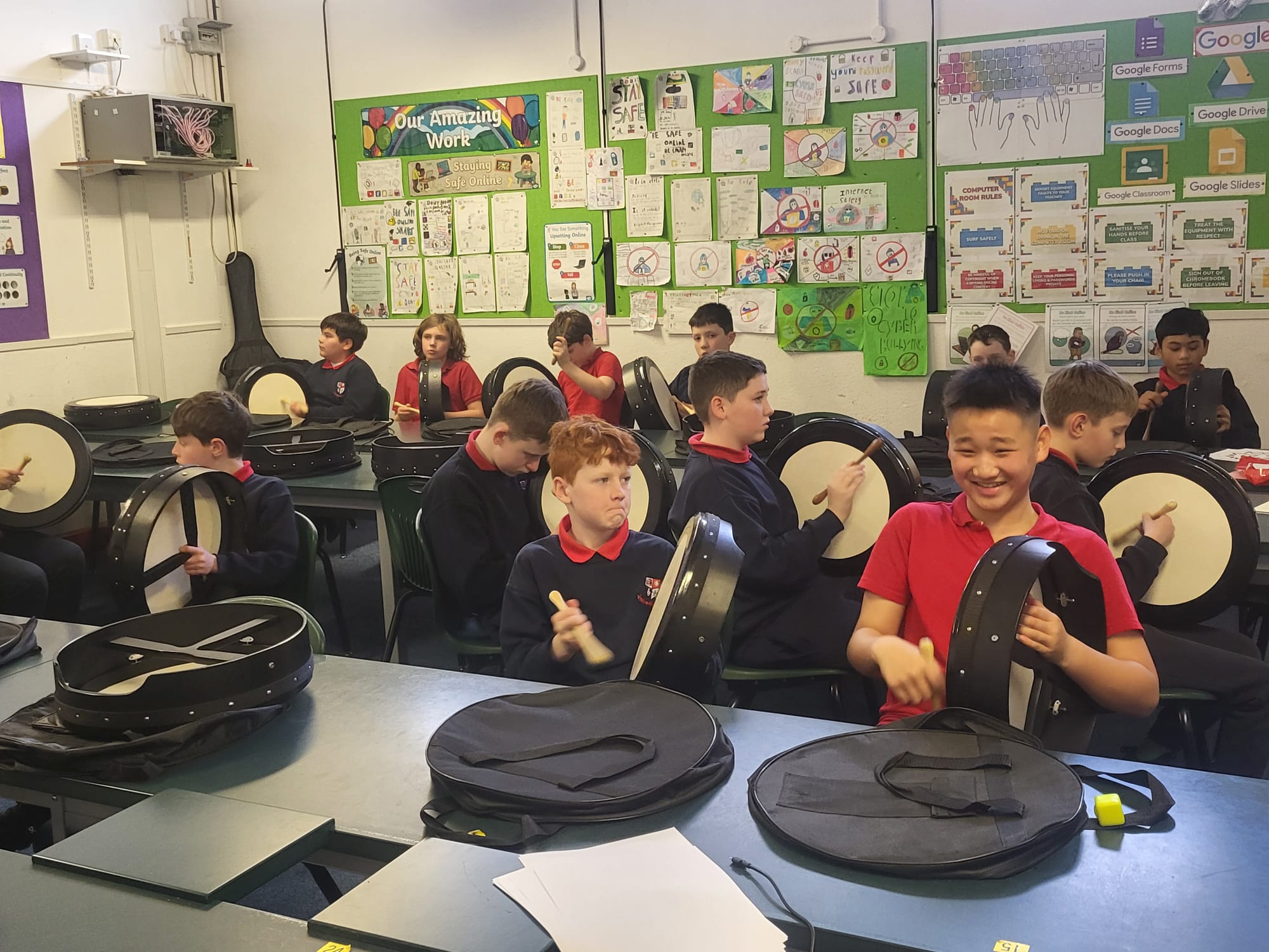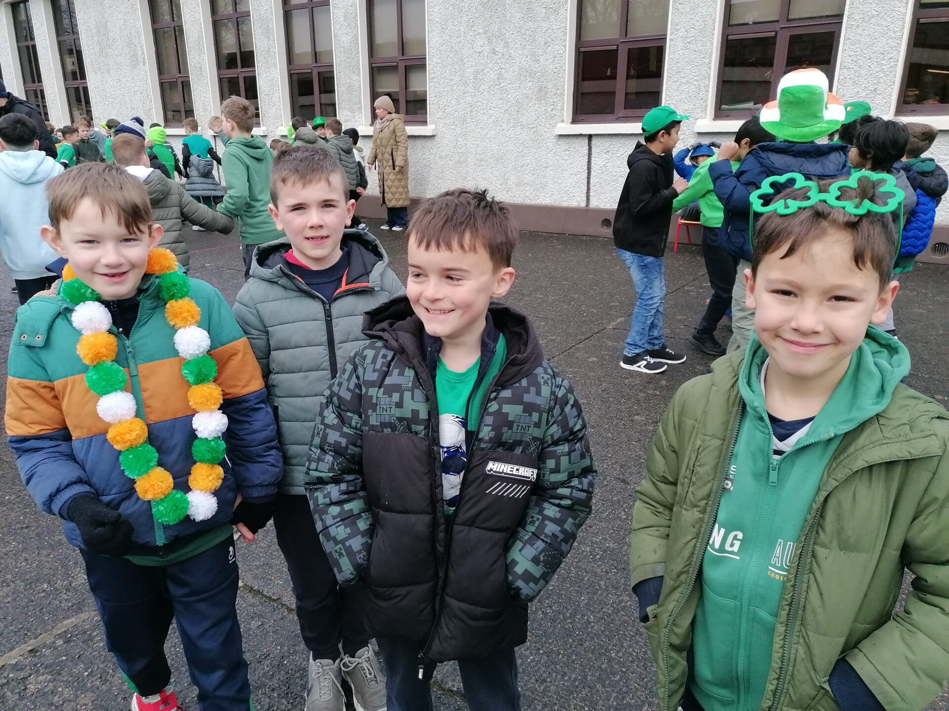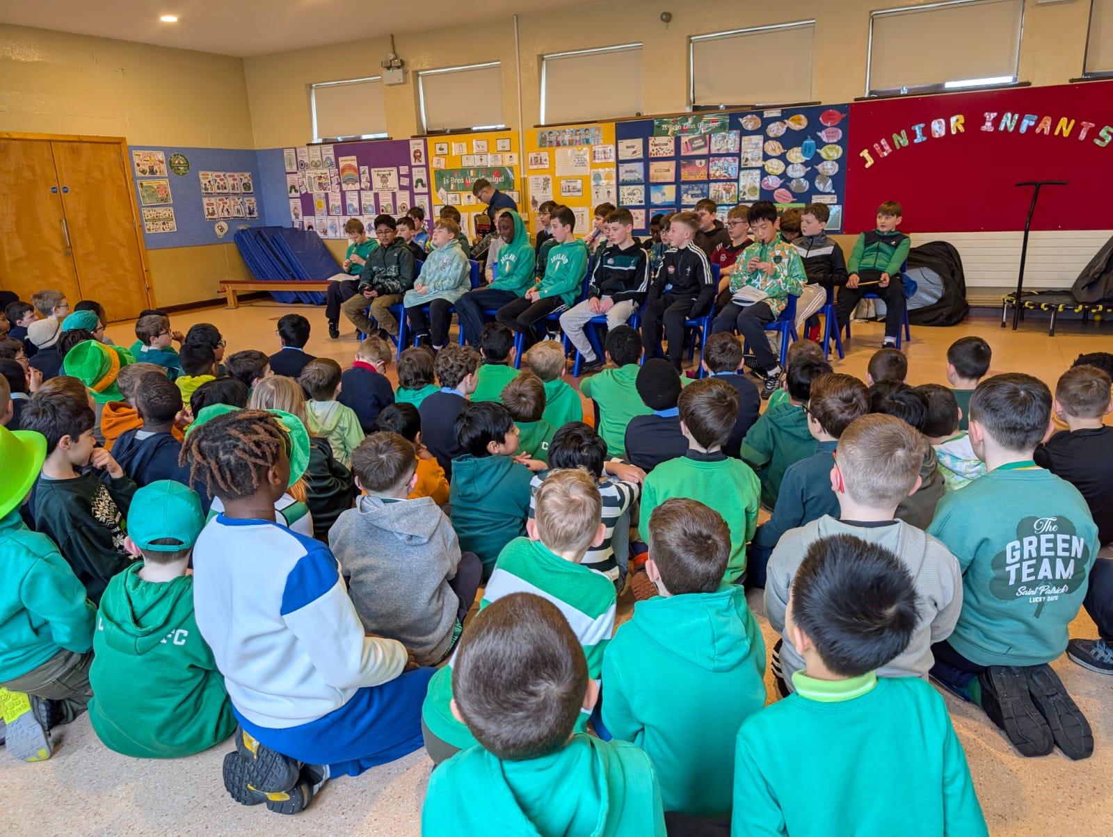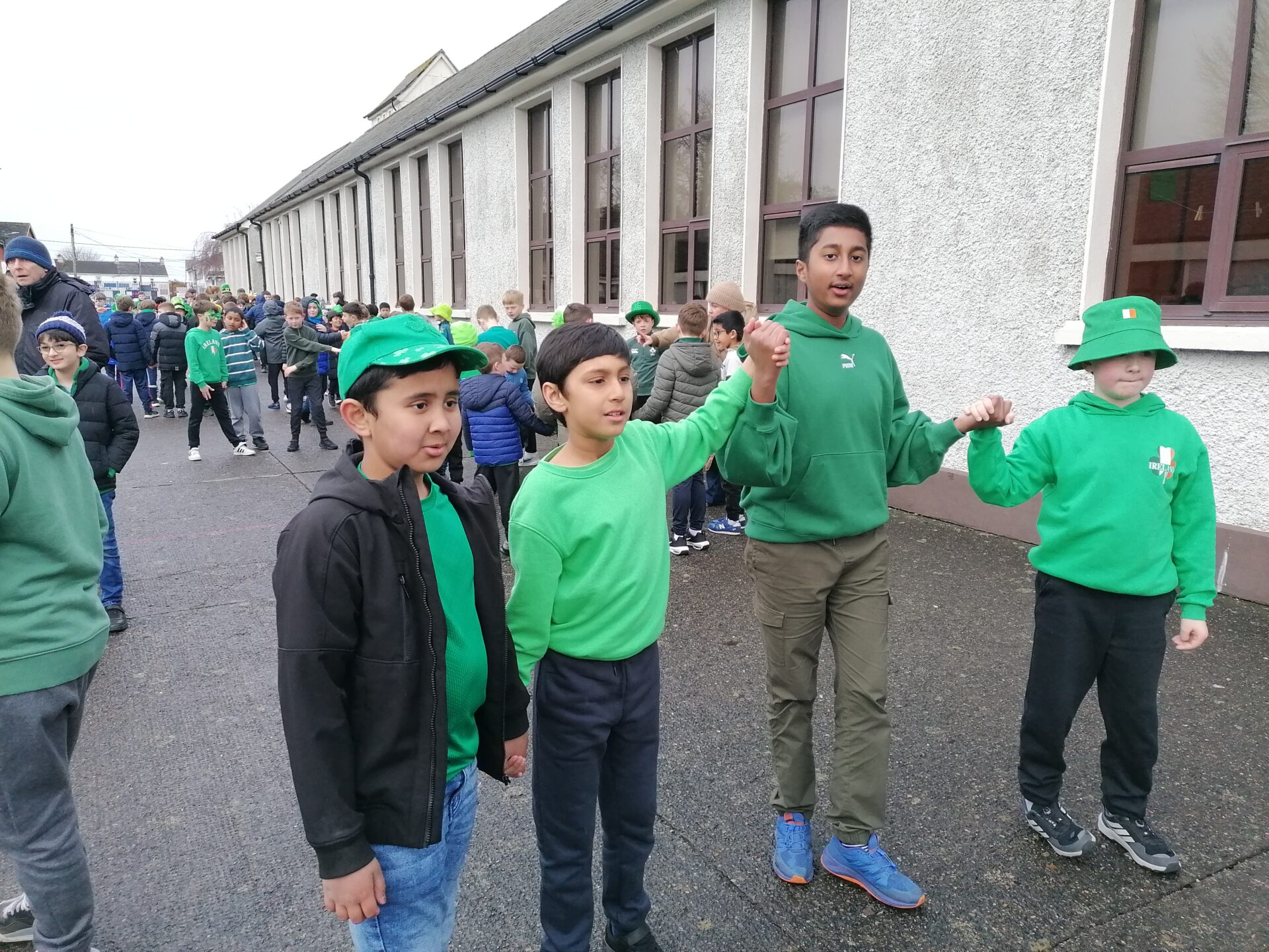 Boys were invited to wear something green on ‘Lá Glas’. We had great fun stepping out our Irish dancing during our Ceilí Mór on the school yard on Friday 13th March. A special thanks to Mr. Smyth for coordinating such a fantastic week of Irish events. Buíochas mór leis na múinteoirí agus na daltaí go léir! Bhí an-sprócht agus spraoi ag gach duine!