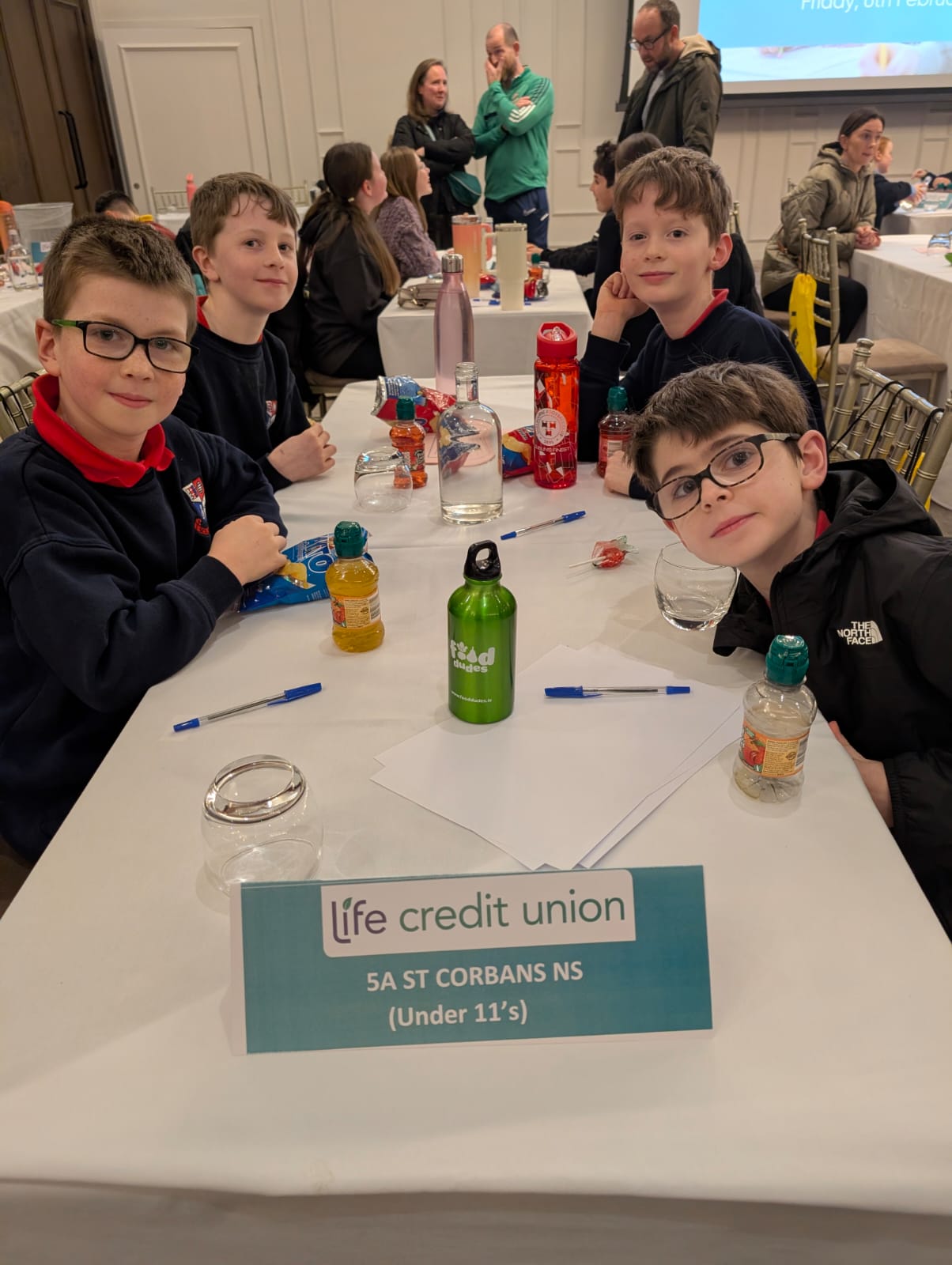 Every year St. Corban’s takes part in the annual Credit Union Schools Quiz. This year, both our Senior (under 13s) and Junior (under 11’s) School Quiz Teams participated in the Credit Union School Quiz Competition, at the Osprey Hotel, Naas, on Friday, 6th February. Both teams did a fantastic job on the night with some really impressive knowledge, and did both themselves and St Corban’s proud! Well done boys and a big thanks to Ms. Ryan and Ms. McCarville for organising this wonderful event.