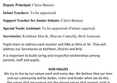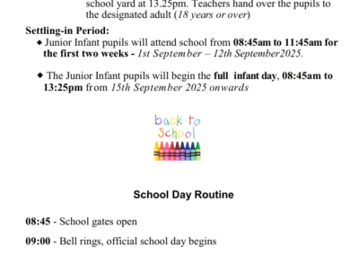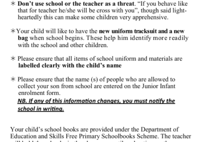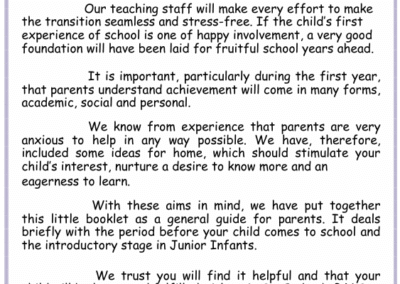 Please see our Junior Infant Information Booklet below for some helpful tips to be mindful of as your child prepares for starting school. It features some information on our school procedures and some key dates for your diary.