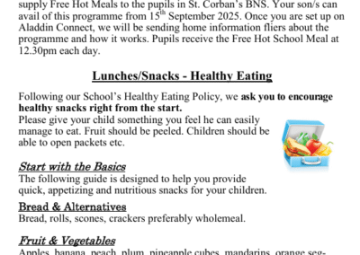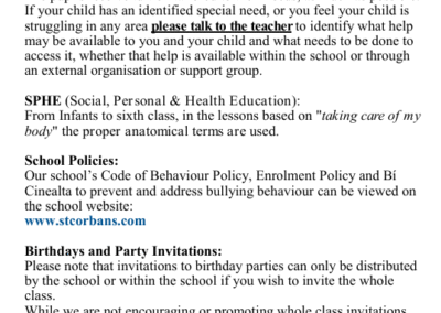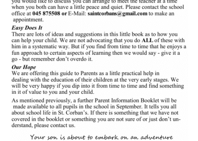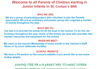 On behalf of everyone in St. Corban’s B.N.S., we want to extend our warmest welcome to our prospective new pupils and their parents. We understand that moving to ‘Big School’ is an important milestone in a child’s life. We want to reassure you that we in St. Corban’s will do our best to make your child’s transition to our school as smooth and happy as possible.