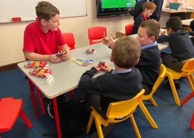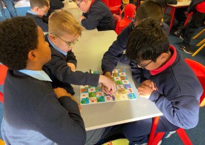Students forged meaningful connections by collaborating across different class levels through a range of activities such as paired reading, cooperative P.E. games, board games, Irish language games (cluichí Gaeilge), art projects, problem-solving tasks, coding with Beebots, and Kahoot quizzes on iPads. These activities fostered teamwork, collaboration, patience, and kindness.